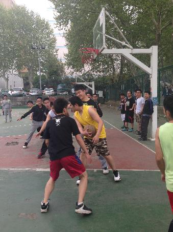 首先进行的是三分投篮大赛,每位参赛人员有2分钟的投篮时间,在场的人员都可以帮其传球,时间段内进三分最多的人获得胜利。比赛进行的如火如荼,不断有年级里的同学在赶过来看比赛时现场报名。最终,环境工程专业的云旦平措同学获得了第一名,给排水专业的柴家盛和周仕华同学获得并列第二名。与此同时,参加之后PK赛的同学们也在另一块场地积极热身,为之后的比赛坐着准备