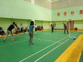 4月14日下午,似火的春阳在昭示着夏日的来临。羽毛球场馆内,队员们挥舞着球拍,积极的准备着迎接羽毛球混双,男双与女双的比赛,洋溢的热情与外面的炎热相得益彰。
