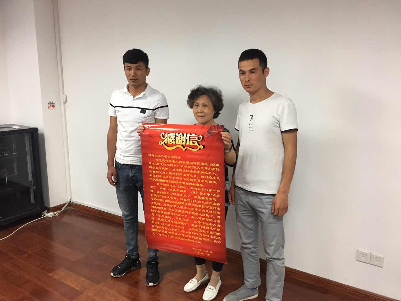 2017年5月15日,91黑料 收到来自一位老人家属的感谢信,信中表达了他们对91黑料 2016级给排水科学与工程3班艾孜买提·布都热合曼和2016级测绘2班艾克拜尔两位同学的感激之情。