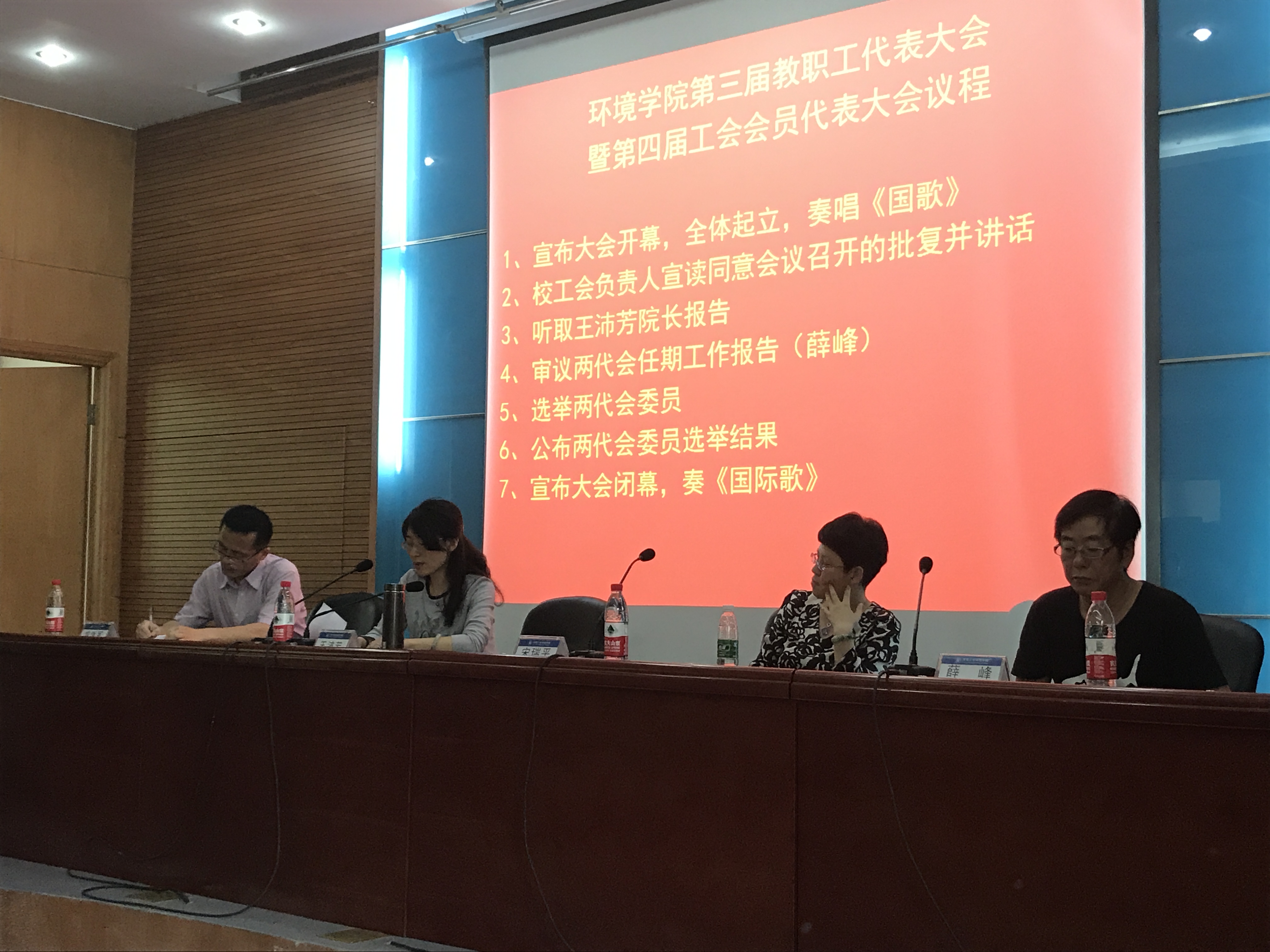 会议还听取了学院第三届工会委员主席薛峰老师做的学院两代会任期工作报告,并开展了新一届学院教代会执委会和分工会委员的选举工作,选举结果各位委员得票数均超过代表人数的三分之二,大会在国际歌的歌声中圆满闭幕。