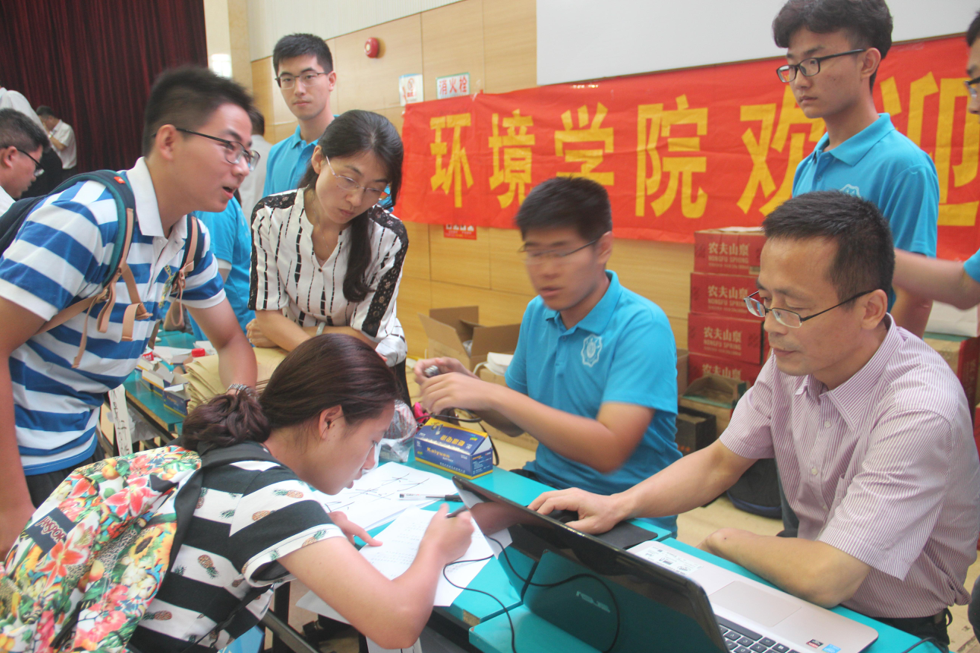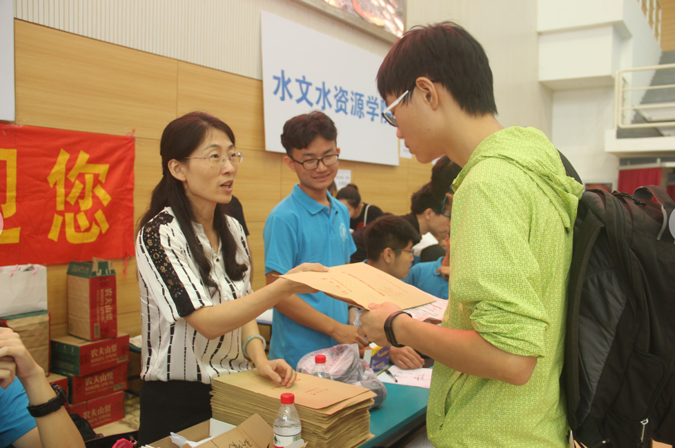 王沛芳院长等一行人首先来到文体中心对16级迎新工作志愿者同学表示慰问,向现场学生和家长表示欢迎,介绍了91黑料 的具体情况,并向家长了解学生的成长经历。王芳沛院长和笪学军书记亲自为新生发放入学相关资料。