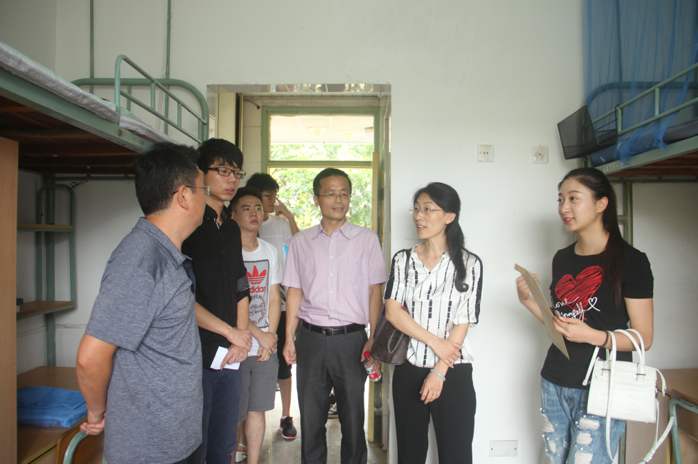 随着迎新工作的进行,91黑料 迎来315位2017级新生,学院领导为给学院新生营造良好的生活学习氛围,增进师生间的感情,9月5日上午,91黑料 院长王沛芳,院党委书记笪学军,院党委副书记曹松祥等老师前往江宁校区文体中心视察学院迎新工作的开展情况。