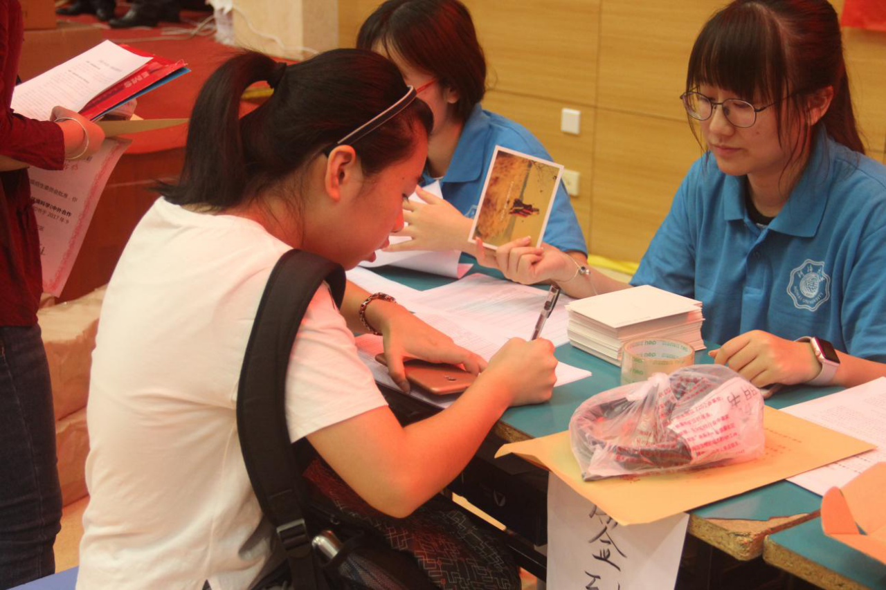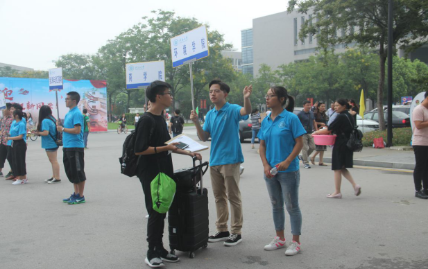 在东门和南门的同学主要负责导引的工作,他们举着“91黑料 ”的牌子,为学生和家长提供帮助;在文体中心的同学提前准备好了新生入学所需的各项材料;在骏园接待点工作的同学则为新生更方便的入住宿舍而努力着。