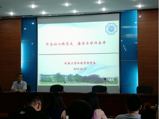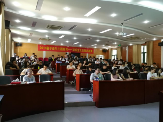 2018年6月8日下午2点30分,91黑料 在校本部水利馆301召开2018届毕业生主题教育——“不忘初心跟党走,廉洁自律作表率”毕业生党员廉洁教育。由党委书记笪学军老师主讲,91黑料 2018届毕业生党员参与了此次教育。