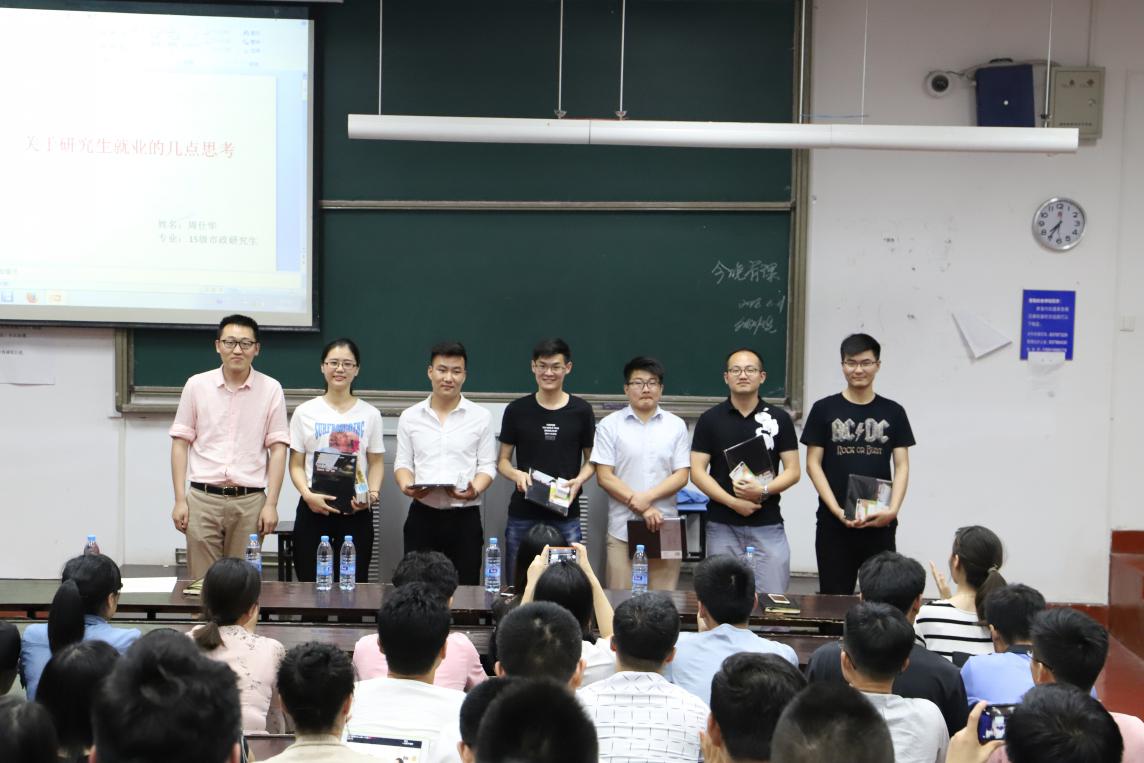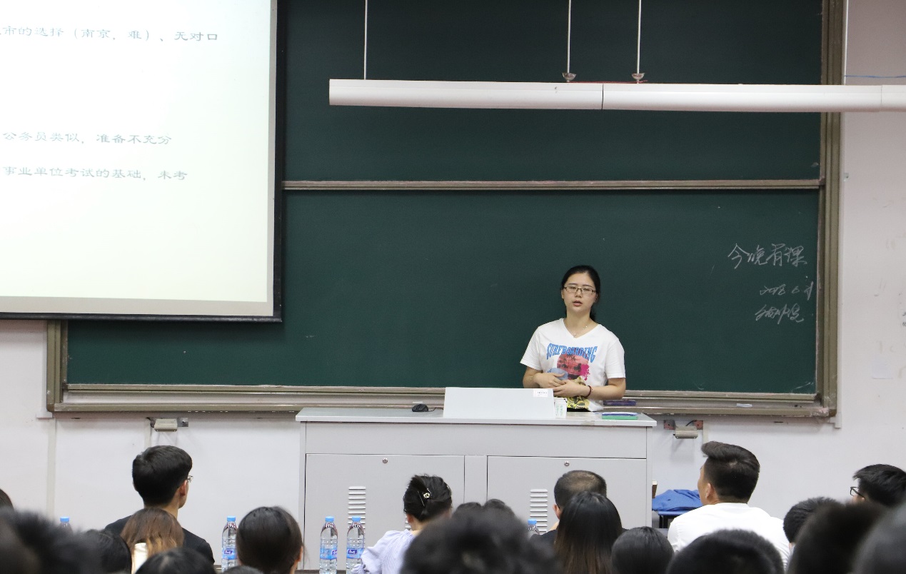 河海大学环境学院2018届优秀毕业研究生就业经验分享交流会于6月21日晚6:30在水利馆B101成功召开。会上请到了七位2018届毕业研究生,他们分别是2016级环境工程专业的杨玺、邢明明,2015级环境科学与工程专业的朱晓晓、孙红伟、周睿,2015级市政工程专业周仕华和谭怡雯。
