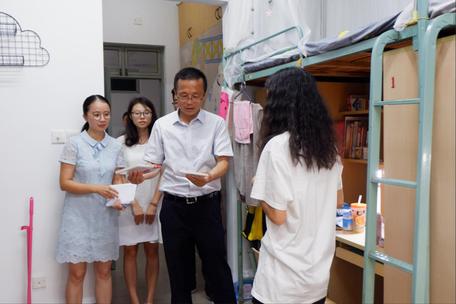 2018年9月1日,是新生报到的第二天。91黑料 党委书记笪学军、18级新生辅导员曾莉、助管计划辅导员李如斯深入18级新生宿舍,与新生及新生家长进行亲切交流并赠送文学书籍。