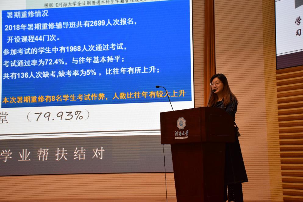在学习方面,金老师向同学们分析汇报了过去一个学年年级的总体成绩,并对同学们新学期的学习提出新的期望和鼓励。针对部分同学想要提高绩点的问题,老师告知了大家重修的相关事宜,并且再一次强调了考风考纪的重要性,督促同学们认真学习,诚信应考。PU第二课堂的成绩也受到了金老师的重视,年级里79.93%的同学阶段性成绩合格。金老师特别提到,PU学时不够的同学在以后要积极关注院群消息,里面会不定时发布一些志愿活动、读书活动等来增加大家的学时。另外,本学期另外增添了班级日志,即每个班每次开班会的情况,课堂出勤情况都需要记录在册,方便统一管理。本学期学业帮扶结队活动依旧展开,年级里也有固定教室每周答疑值班。