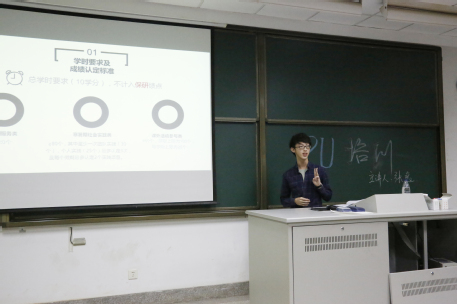 本次培训主讲人为17级91黑料 PU助理张逸同学。培训伊始,张逸同学强调了大学第二课堂的重要性。第二课堂主要依托PU平台实行,为此,张逸同学向同学们介绍了第二课堂素质拓展学分的分类以及其认定方法,并在细致地解释学时的划分规则后,结合自身经验给出了许多宝贵的意见。随后,张逸同学阐述了PU平台的具体操作方法,重点指出同学们在使用中易发生的错误,对活动的“报名”“签到”“签退”和问题申诉进行了详尽的指导,同学们受益匪浅。