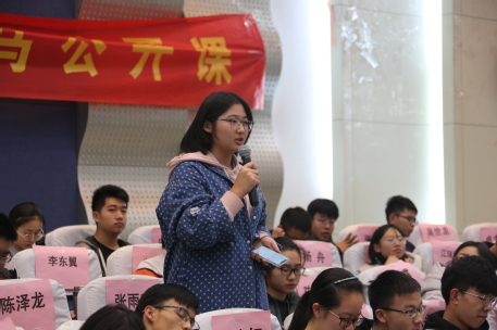最后是17级学姐陈靖媛向大家分享了自己的看法。这位学姐认为学生干部应首先明确自己是联系学生与老师的纽带。作为师生沟通的桥梁,学生干部必须严格遵守各项规章制度,模范履行工作职责,起到引领作用。但是作为学生,应当践行学生的学习本分。不仅仅局限于学习专业知识,工科学生也应当进行思想道德、科技创新、文艺体育的学习。做一个理想信念坚定,目光长远的有志青年。