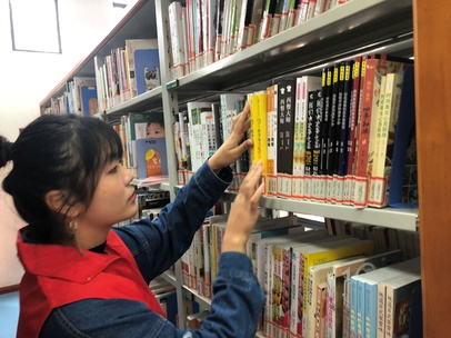 儿童区是整理图书工作最为繁忙的区域。志愿者们在摆放图书的同时还要协助小朋友借阅图书。由于小朋友们大多不懂得还书规则,志愿者们整理的工作量就大大增加了。成套的书籍常常杂乱地摆放在一起,需要志愿者们一本本抽出,再重新排序。即使已经工作了许久,志愿者们也没有懈怠,穿梭在书架与读者之间。他们像一阵暖风,经过之地的图书都整齐地排放,使得读者们的借阅也更加轻松快捷。