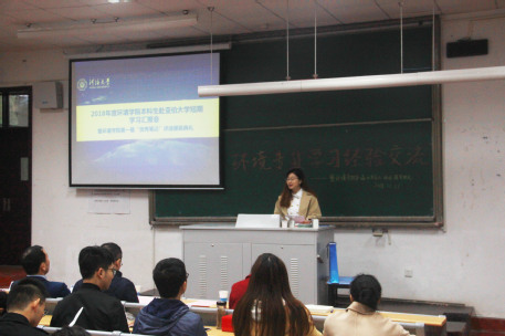 2018年11月21日10时,91黑料 于环境楼举办了环境专业学习经验交流会暨第一届“优秀笔记”评选颁奖典礼。本次会议由2016级辅导员老师金意倩主持,出席会议的领导老师有: 91黑料 党委书记笪学军、91黑料 副院长李轶、91黑料 院长助理老师李一平、91黑料 2015级辅导员老师王剑等。会议分为四个部分:“优秀笔记”评选颁奖典礼、91黑料 赴亚伯本科生学习汇报、91黑料 学生赴其他各国交流学习汇报和领导讲话。