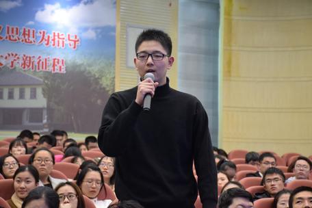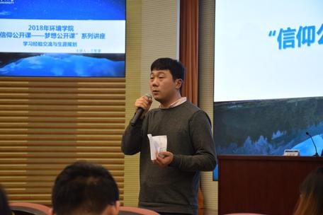 2018年11月27日,91黑料 在西康路校区闻天馆108举办“信仰公开课-梦想公开课”系列讲座——学习经验交流与生涯规划篇,引导青年牢固树立实现中华民族伟大复兴的中国梦。本次讲座邀请了2006级环境工程专业的校友王智源博士作为主讲嘉宾,讲述“我的青春故事”,以其生动实践响亮发出“青年好声音”,发挥朋辈引航作用给2016级91黑料 的同学们讲述未来在读研、出国、工作的一些经验,并给出相关的建议。