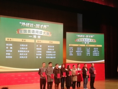 2018年12月9日,91黑料 2015级环境科学专业本科生侯思雨同学在全国英语阅读大赛中喜获一等奖。 此项大赛由外语教学与研究出版社,教育部高等学校大学外语教学指导委员会等组织联合举办,历时3个月,由网络赛、学校落地赛、省内复赛和全国决赛组成。侯思雨同学于学校落地赛中脱颖而出,以校级特等奖晋级省赛,又力压省内其他高校选手以江苏省第一名的成绩顺利晋级全国决赛,最终在全国赛中取得一等奖的好成绩。