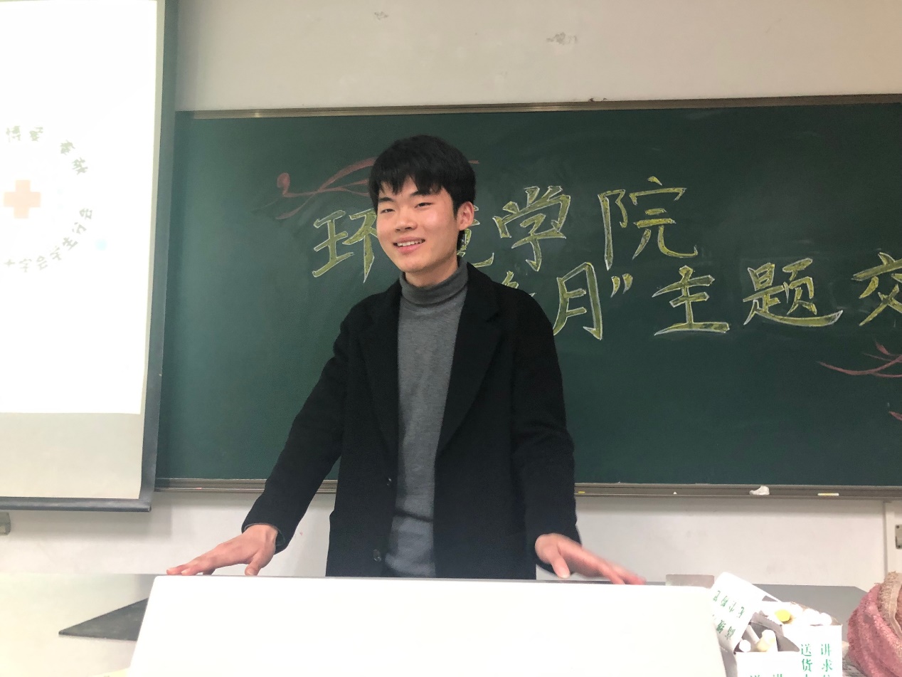 第五位是17级环境2班的何杨同学。他是一名91黑料 红十字会培训部的一名成员。他先向我们讲解了习近平主席对雷锋精神的表述:“信念的力量、大爱的胸怀、忘我的精神、进取的锐气”和胡锦涛同志的总结:“奉献、友爱、互助、进步”,又展示了红会培训部对禁毒和造血干细胞的科普宣传。他向我们讲述了一个让人感到温暖的故事:红会在网上购买禁毒宣传使用的设备道具时,卖家得知了他们是纯公益组织,于是免去了所有的费用。这正是真心的回馈。