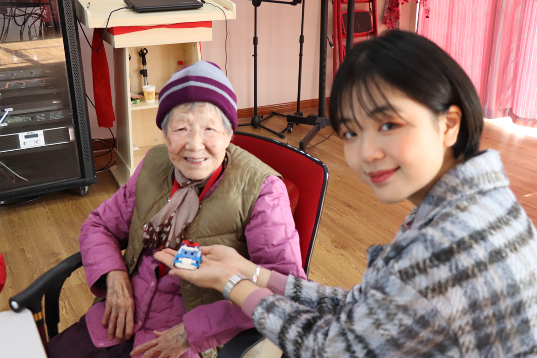 活动结束时,志愿者将制作完成的积木赠送给老人,老人们纷纷表示感谢。之后,志愿者们将活动场地整理好,并和老人们道别,离开了瑞芝康健敬老院。