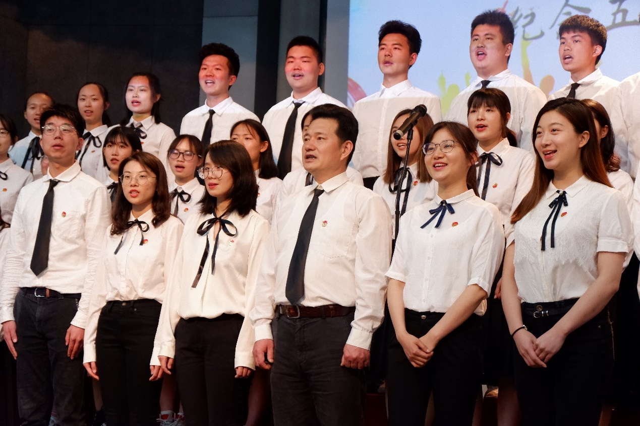 2019年4月26日中午,91黑料 在博学楼报告厅举行了以“青春心向党,建功新时代”为主题的合唱活动,来自91黑料 各年级各专业的50名同学和院党委副书记曹松祥及全体辅导员老师们一起合唱了一首《不忘初心》,致敬五四青年运动,弘扬五四精神。