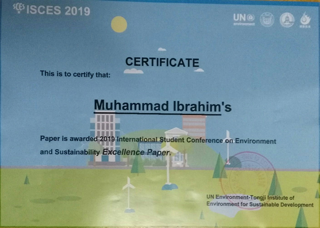 由同济大学、联合国环境规划署、新华社、北京绿色未来环境基金会主办,联合国环境规划署-同济大学环境与可持续发展学院承办,联合国教科文组织、联合国粮农组织等单位协办的2019国际学生环境与可持续发展大会于2019年6月10日~15日在同济大学举行,91黑料 陈德强副教授指导的2018级尼日利亚籍留学研究生Muhammad Ibrahim参加此次大会并获得大会“最佳论文奖”。