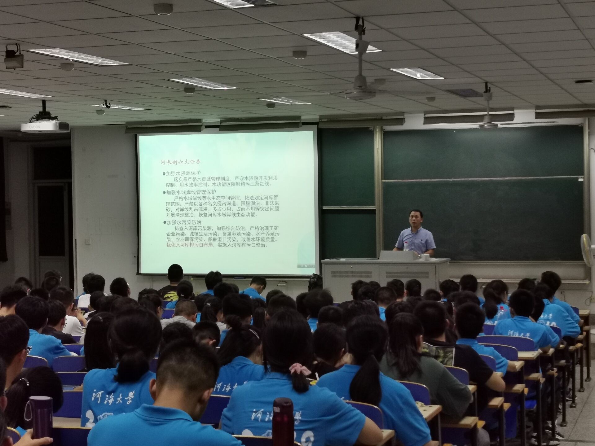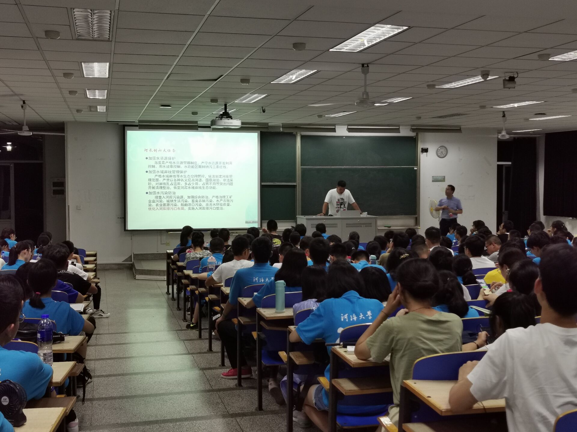 大会一开始,李老师就以喊口号的方式激发同学们的热情。随后李老师在简单的自我介绍后,开始了本次讲座。讲座期间,李老师多次与同学们互动交流,询问同学们对自己专业的认识,现场氛围十分热烈。李老师用各种数据告诉同学们91黑料 的优胜之处,还以近期的大型项目河长制为例子,说明在座同学的专业的优越性,增强同学们的自豪感。