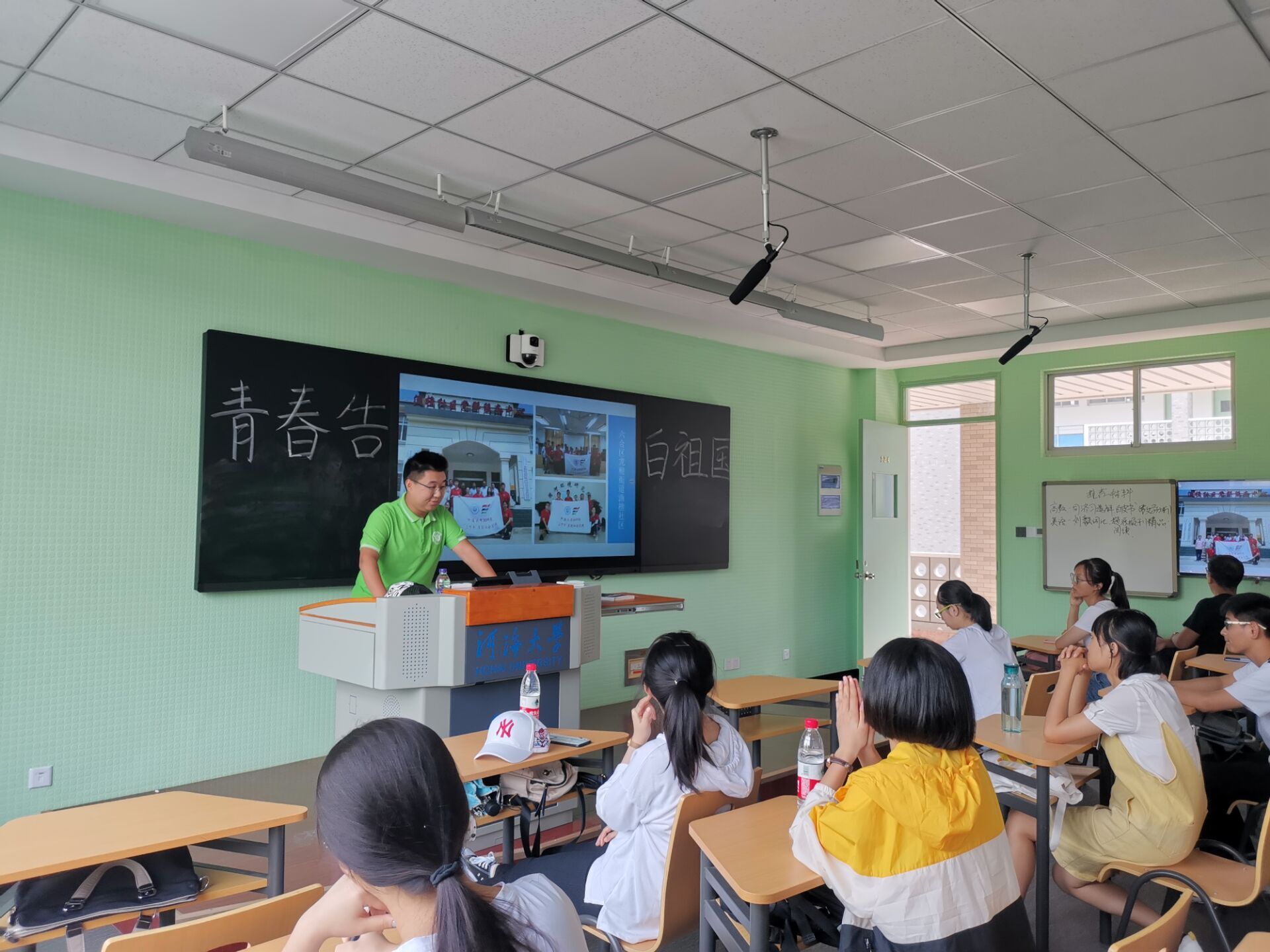 第一个环节是学长姐介绍关于自己社会实践的经历。其中助学导师李凡彬重点介绍了自己支教的经历,通过学长生动的描述,学弟妹们真切地感受到了支教的伟大意义,而李学长播放的他们支教的视频也让在场的每个人都十分有感触,助学导师们用自身经历,让新生们感受到作为大学生,如何利用假期的时间才更有意义。