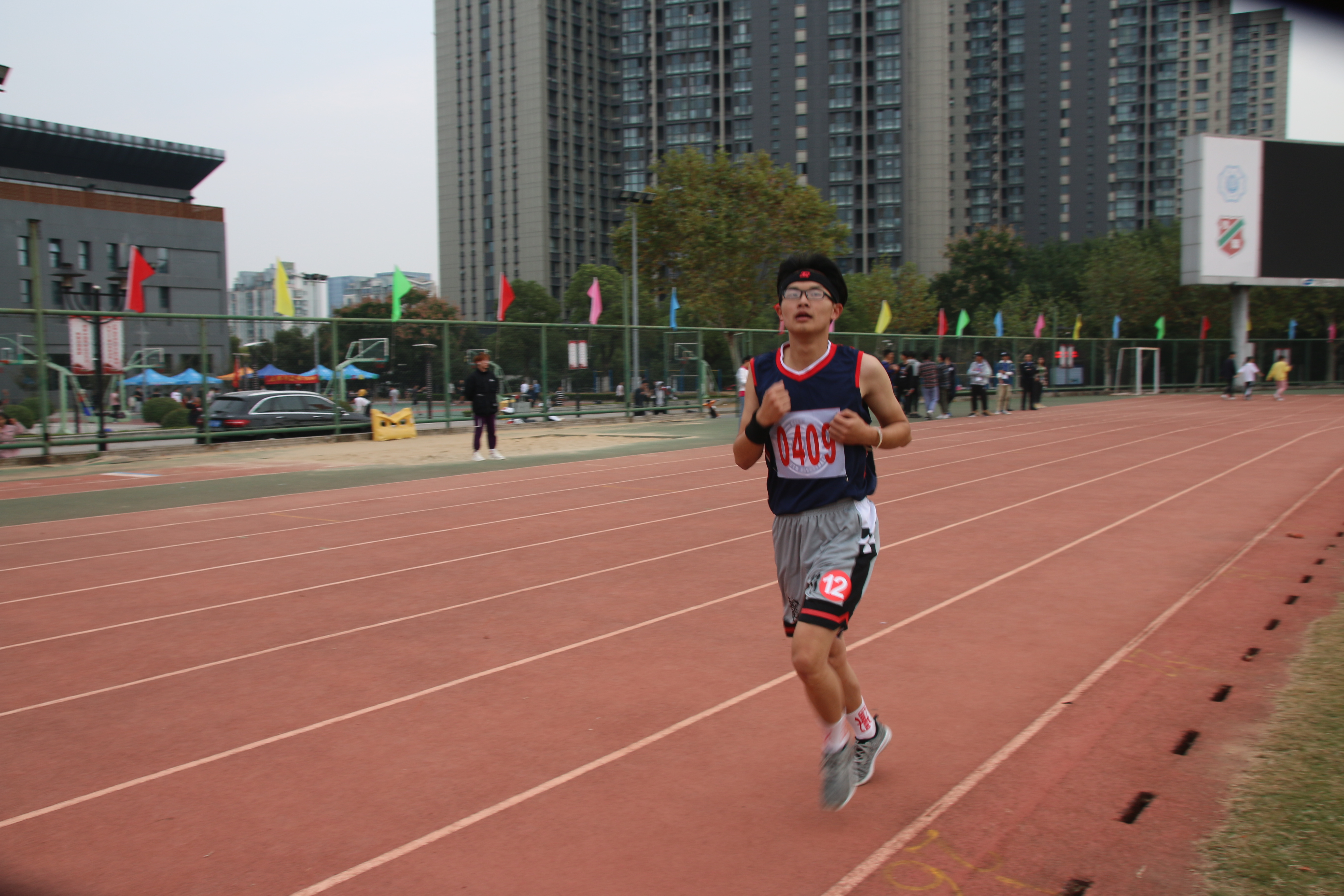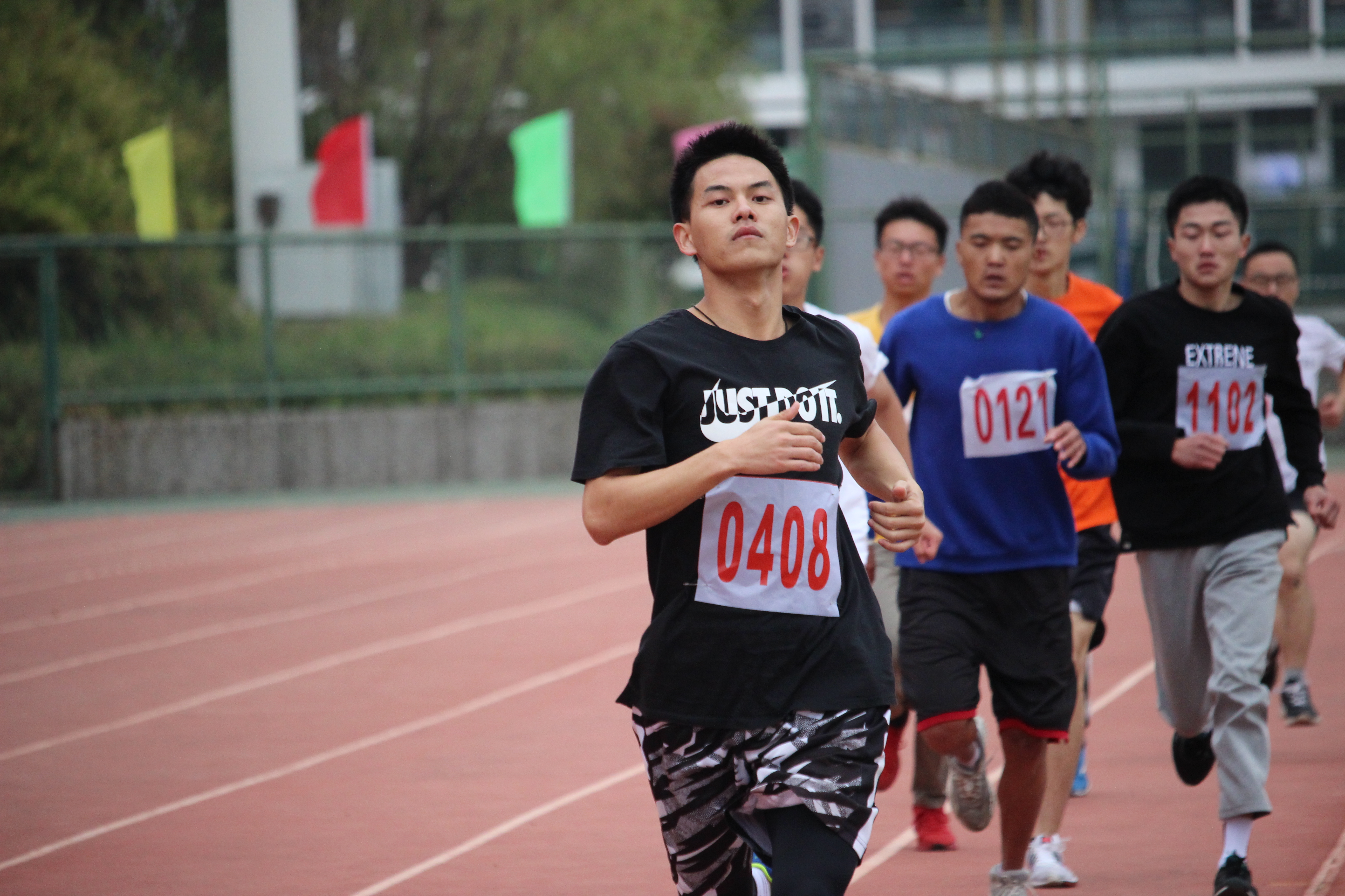 随后进行的是令人瞩目的男子3000米比赛。三千米的距离可不是一段简单的路程。李一昕、洪辉、崔芳源三名同学不畏惧全身酸痛与体力不支的艰苦,用他们惊人的毅力向观众们展现出自己坚强的青春风采。