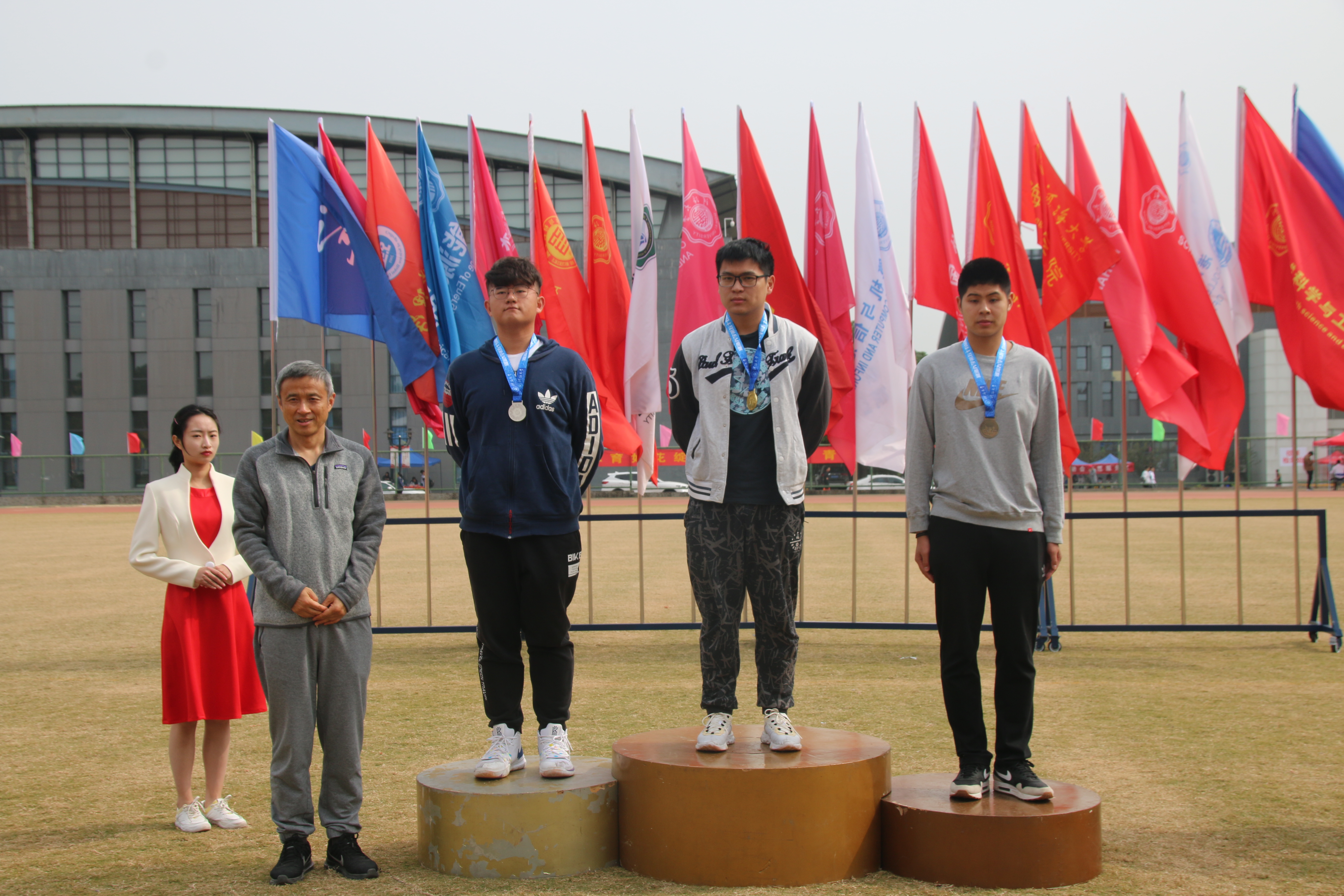 在同时进行的田赛中,环境院选手表现出色。那矫健的身姿奋起一跃,吴嘉和刘洋分别勇夺男子跳远的第二和第三名。