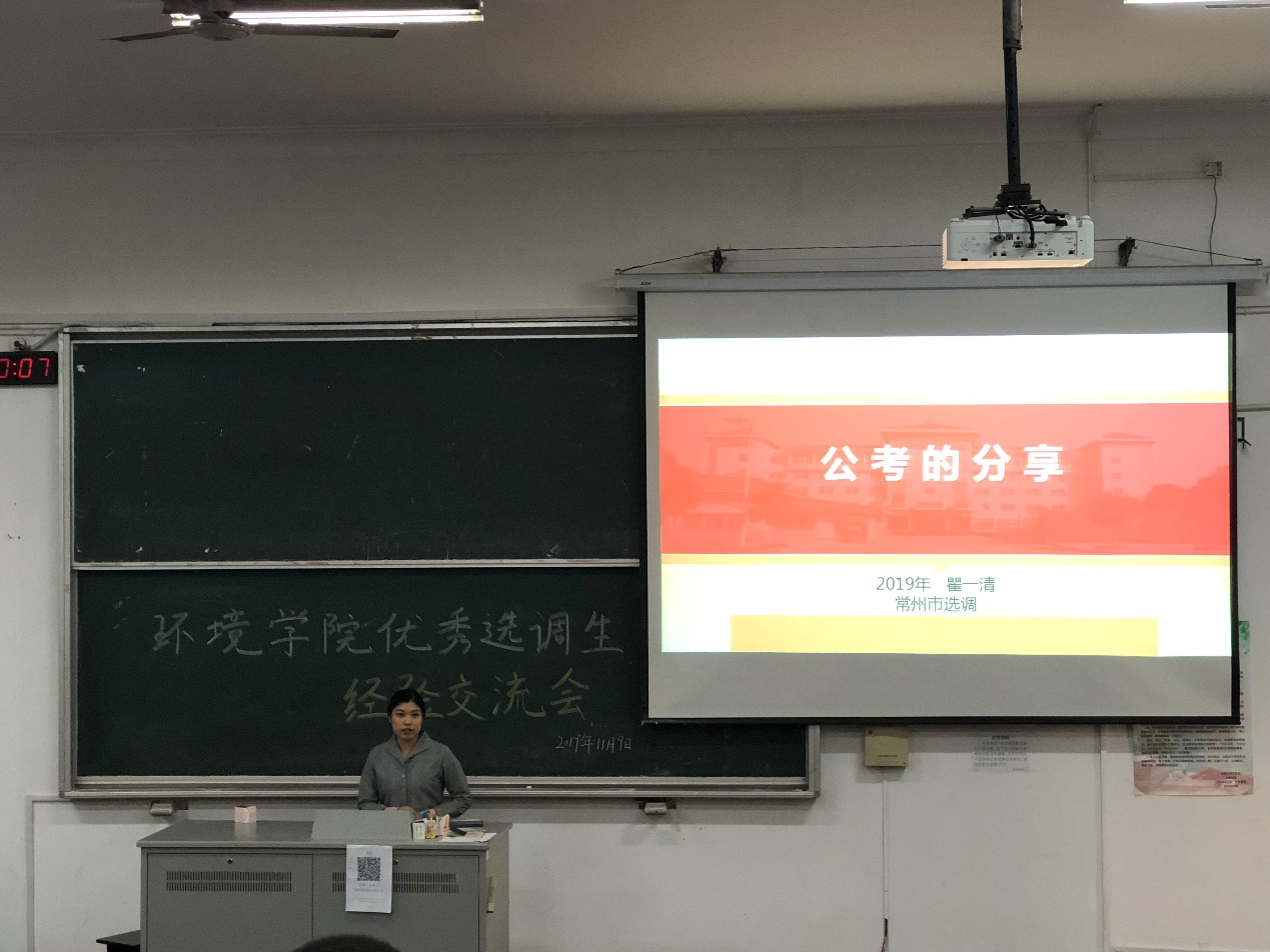 为了进一步开展学院就业工作,培养学生的就业能力,帮助有意向考公务员的同学解答疑难困惑。2019年11月9日,91黑料 在工程馆106举行了优秀选调生经验分享会。本次分享会邀请到了2019届考上江苏省选调生的瞿一清和南通选调优秀青年人才的黄慧慧两名同学。有意考公务员的毕业班研究生以及部分研一、研二同学参加了此次经验分享会。