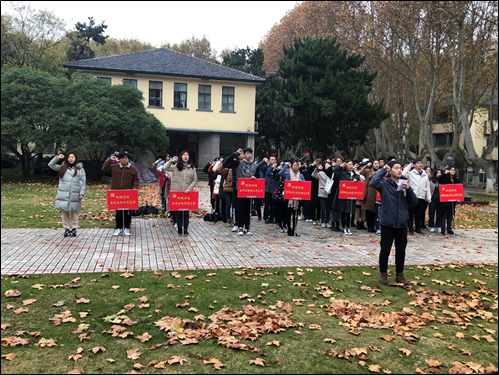 仪式第三项,国旗下全体党员宣誓。16级曾一川同志领誓,全体党员宣誓:大家右手抱拳,庄严地举起右手。“我志愿加入中国共产党,拥护党的纲领,遵守党的章程,履行党员义务,执行党的决定,严守党的纪律,保守党的秘密,对党忠诚,积极工作,为共产主义奋斗终身,随时准备为党和人民牺牲一切,永不叛党!”在国旗的庄严注视下,大家将对祖国的热爱、对党的敬仰融入到誓词之中,誓将为共产主义建设奋斗终生。
