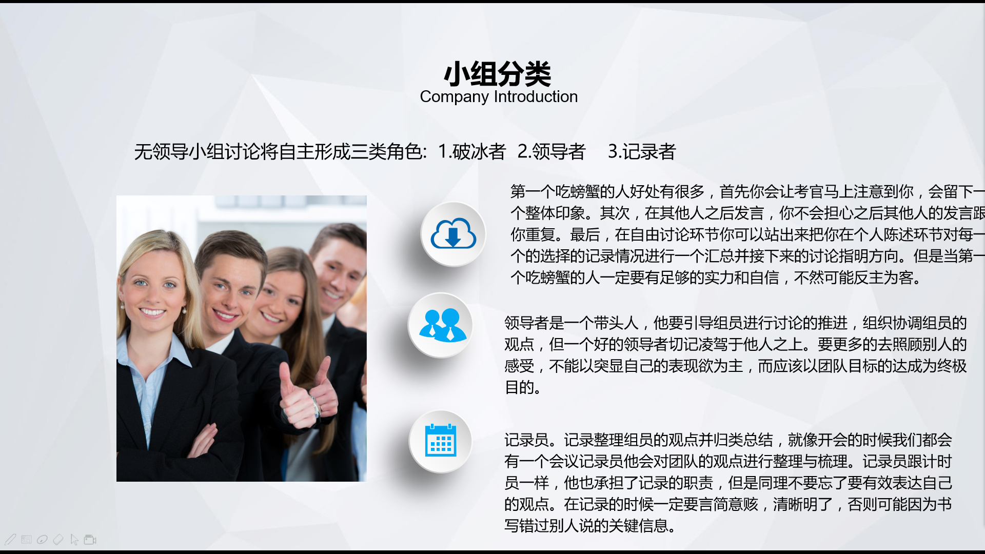 在活动正式开始之前,陈老师还为大家介绍了无领导小组的礼仪、分类、规则等,让同学们了解整个讨论的流程,以及需要注意的问题。