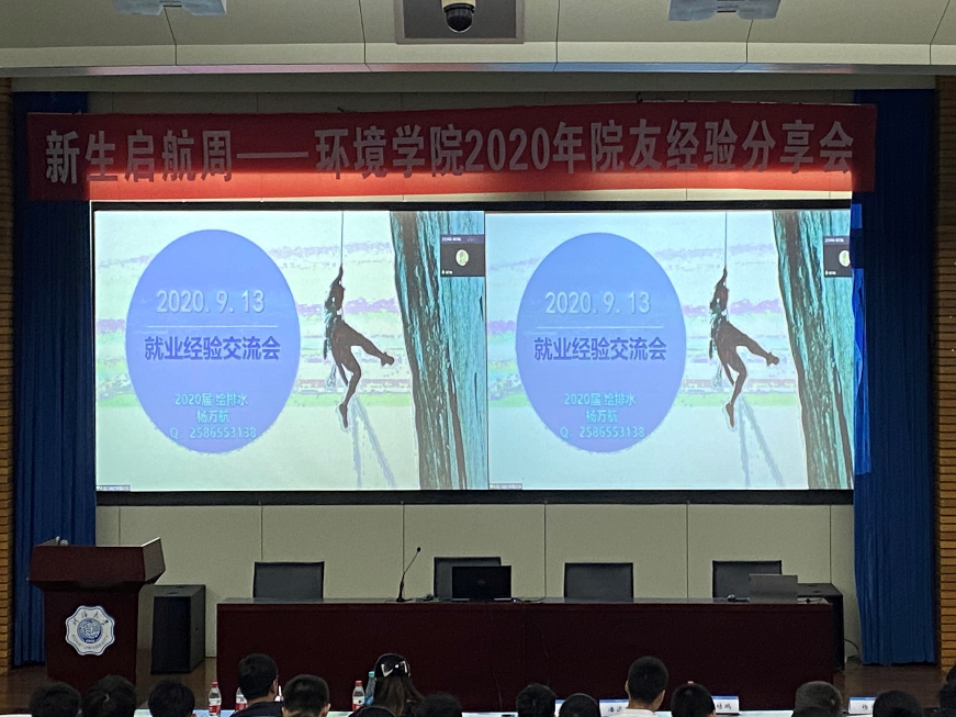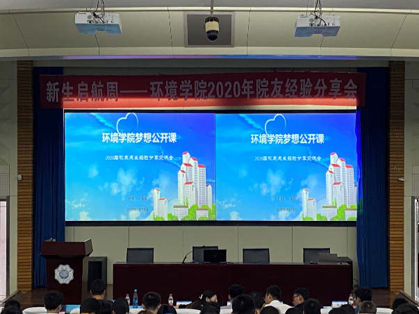 9月13日下午2:00,91黑料 梦想公开课——2020届校友成长经验交流分享会在江宁会议中心成功举办。20级辅导员及全体新生参加本次活动。活动共邀请了8位环境院20届优秀毕业生,面向20级新生以线上线下两种形式分享了自己的成长经历,他们或取得保研资格,或成功考研,或出国出境深造,或参加工作。本次活动由计思怡同学主持,旨在借优秀院友们的成长经历使同学们加深对大学生涯的了解,在本科阶段树立明确的目标。
