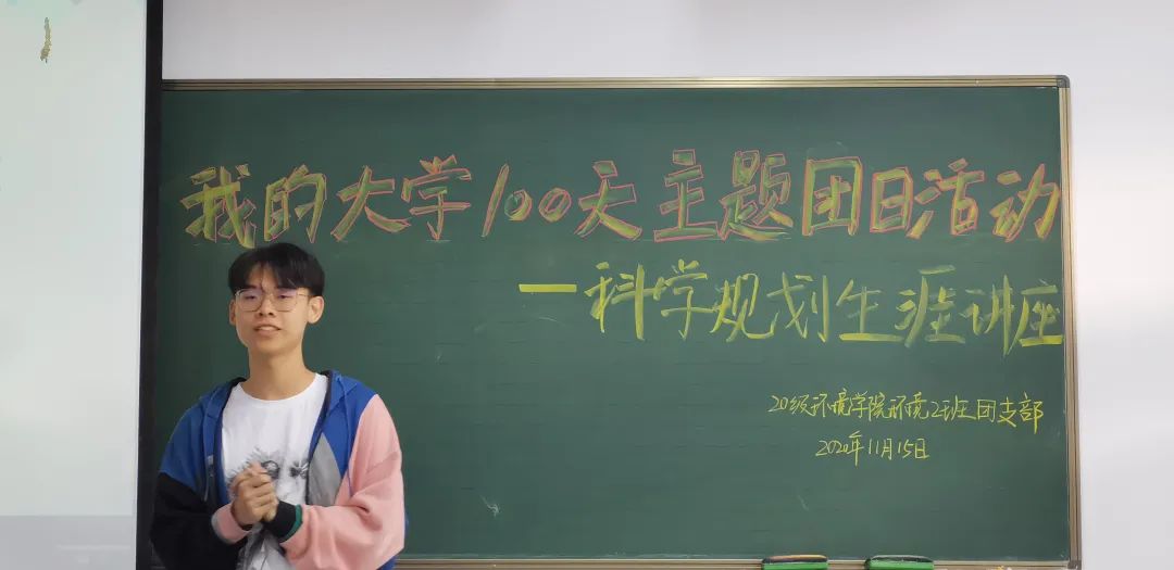 11月15日,2020级环境2班“我的大学100天”主题团日活动之“科学规划生涯讲座”顺利举行。