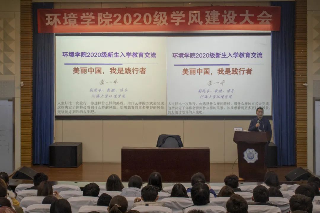 1月4日,91黑料 2020级学风建设大会在江宁会议中心举行。91黑料 副院长李一平教授在2021年第一个工作日,与2020级全体本科生欢聚一堂,进行亲切的交流,作《美丽中国,我是践行者》的主题报告。2020级辅导员杨铮主持会议。