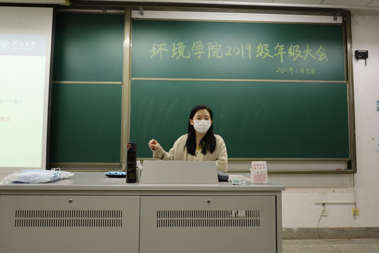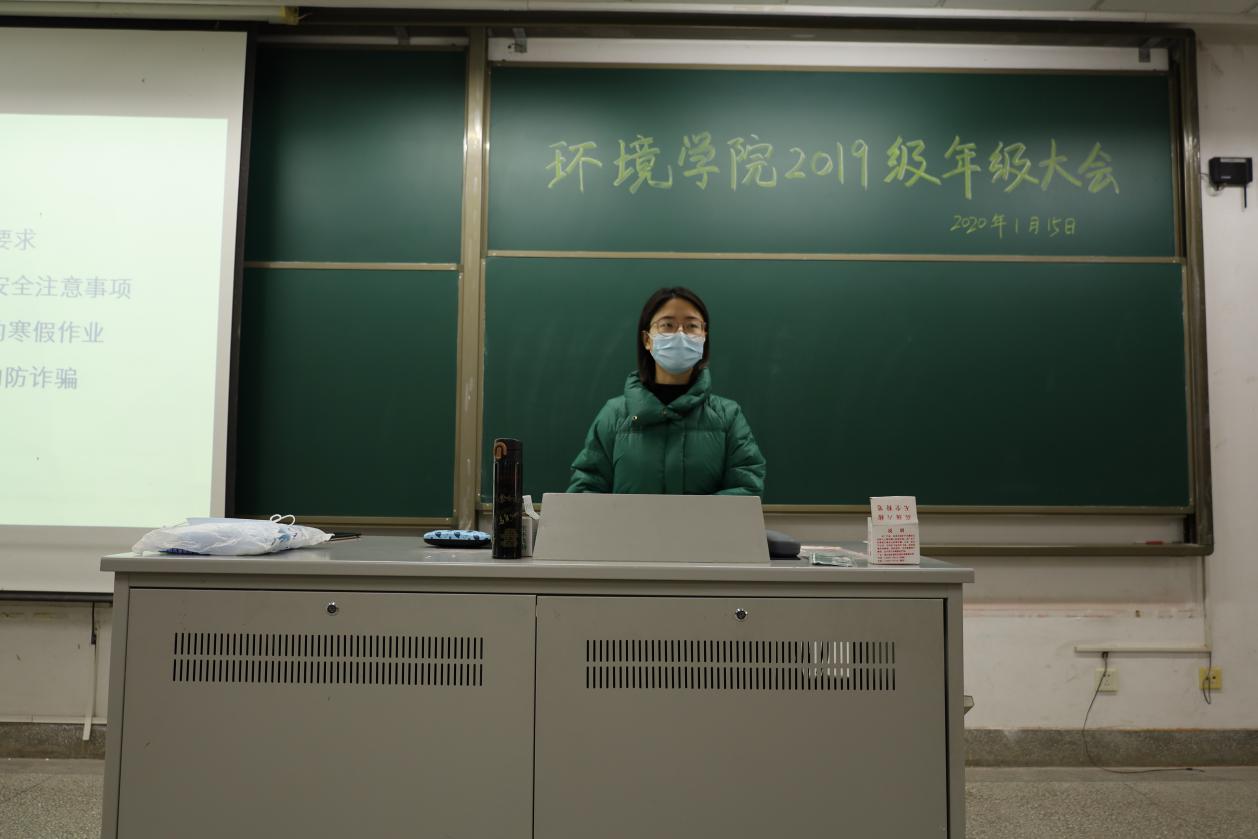 2021年1月15日下午,为确保同学们能够度过一个安全愉快的假期,91黑料 2019级年级大会在致用楼101举行。参会人员有环境院2019级辅导员扈雅璐和程萌老师以及2019级全体同学。