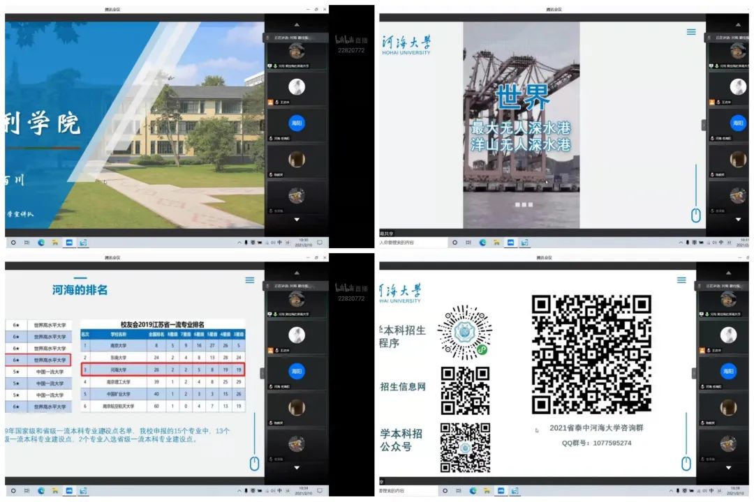 宣讲队伍由六人组成,跨越四个院系,有来自91黑料 的窦佳瑶、李泽胤、李业丰,来自商学院的季婧妍,来自计信院的岳海阳,来自港航院的唐典。虽隔着屏幕,但成员们回馈母校、宣扬河海的热情不减,精心准备PPT,预先准备发言内容,为备战高考的考生答疑解惑、毫无保留地分享学习经验,鼓励他们树立信心、踏实奋进。