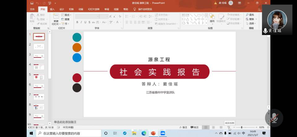 本次答辩一共有8支队伍参加。线上答辩由竞选队伍借助PPT形式阐述工作和评委提问两个环节组成。各位竞选队伍就活动目的、前期准备、宣讲过程以及活动影响等方面展开答辩,各自展示出自己团队在实践中的亮点。而后评委老师们根据答辩人介绍的实践过程和实践成果提出问题,如“通过什么渠道进行宣传并展开线上宣讲的”,“是否介绍过91黑料 ,是如何介绍环境类专业的”等问题,并提出改进意见,为答辩团队完善实践成果提供了方法论。
