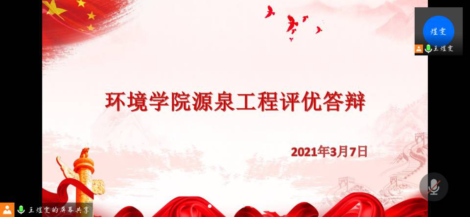 2021年3月7日下午,91黑料 举办了“源泉工程”线上评优答辩。本次答辩由2020级给排水科学与工程2班王煜雯担当主持人,院团委书记金意倩老师、2020级辅导员杨铮老师、院团委副书记唐柏杨、往届寒假实践优秀获得者吴建宇以及唐国涛担任评委。