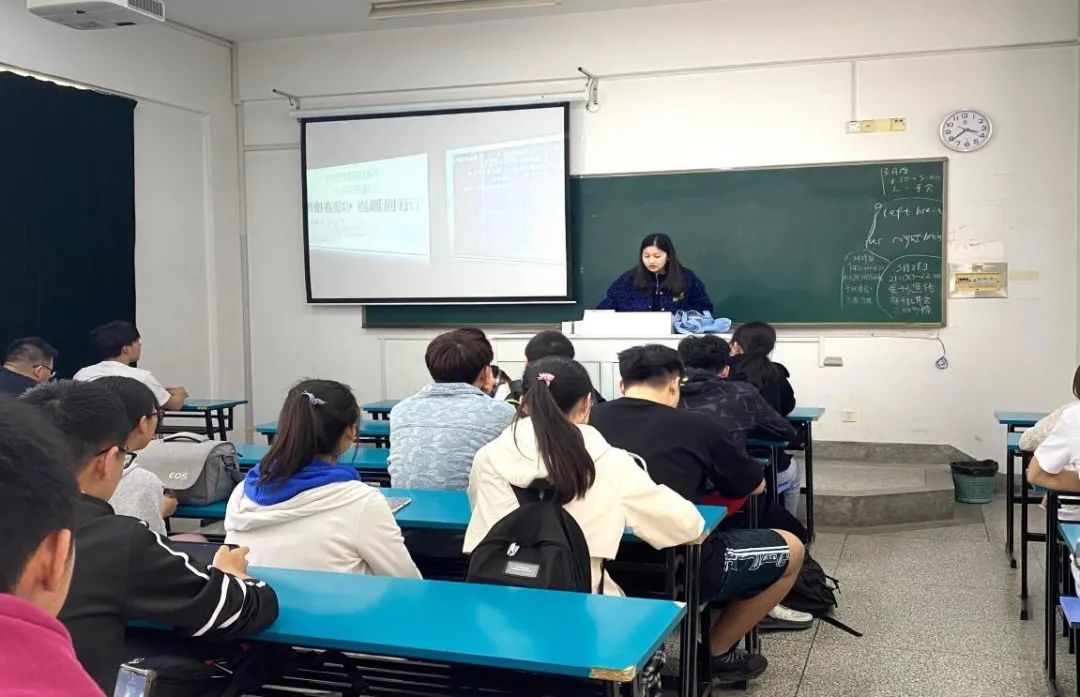 心理委员黄许伟使用PPT讲解大学生常见的心理问题,并提出解决办法 ,建议同学们寻求学校的帮助,及时与他人沟通。
