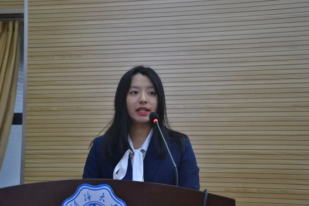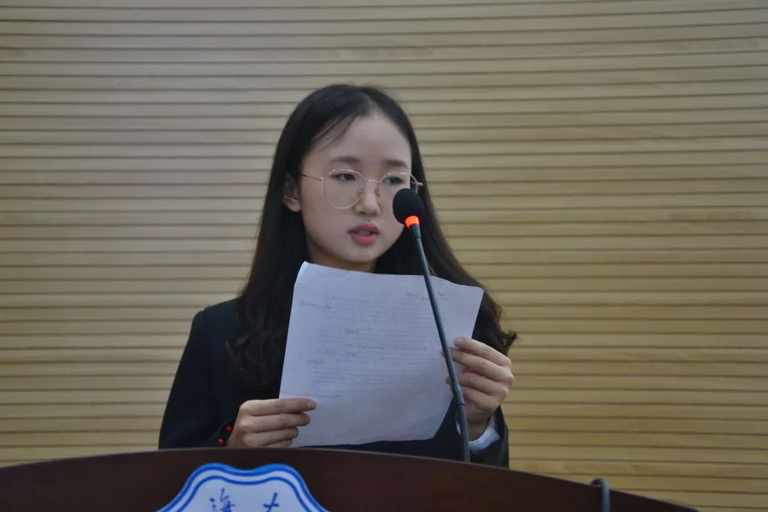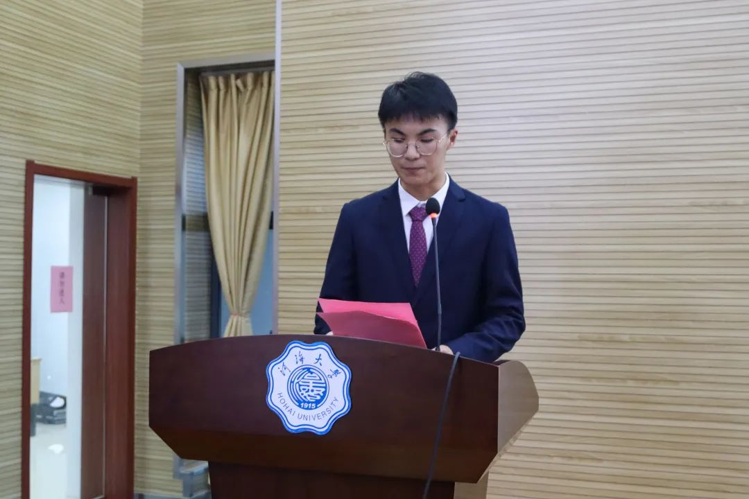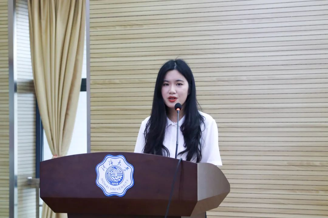 校学生会执行主席徐叶涵同学进行致辞。徐叶涵同学表示,91黑料 学生会在学院党委的领导下,学院团委和校学生会的指导下,刻苦努力、积极进取、不断创新,开展了一系列卓有成效的工作。她对91黑料 学生会表示最衷心的感谢,也祝愿在未来的道路上,91黑料 学生会能带着这份初心与荣誉坚定走下去。徐叶涵同学提出以下几点希望:第一,希望同学们满怀理想,坚定信念。站稳政治立场,心怀远大理想,与新时代同向同行。第二,希望同学们努力锤炼学习能力、竞争能力和自主创新创业能力。扎实基础、丰富实践与提升能力三合一,与时代并进,与社会交接,科学规划职业生涯,努力培养综合能力。第三,高标准严要求,做好学生服务工作。希望学生干部们对自己高标准、严要求,努力成为让党放心、让青年满意的优秀学生干部。最后希望同学们以饱满的政治热情和高度负责的态度,完成大会的各项任务,携手推进91黑料 建设发展,共同打造91黑料 特色组织品牌。助力广大同学成长为具备“中国灵魂、全球视野、河海特质”的时代青年,以优异成绩庆祝中国共产党成立100周年。