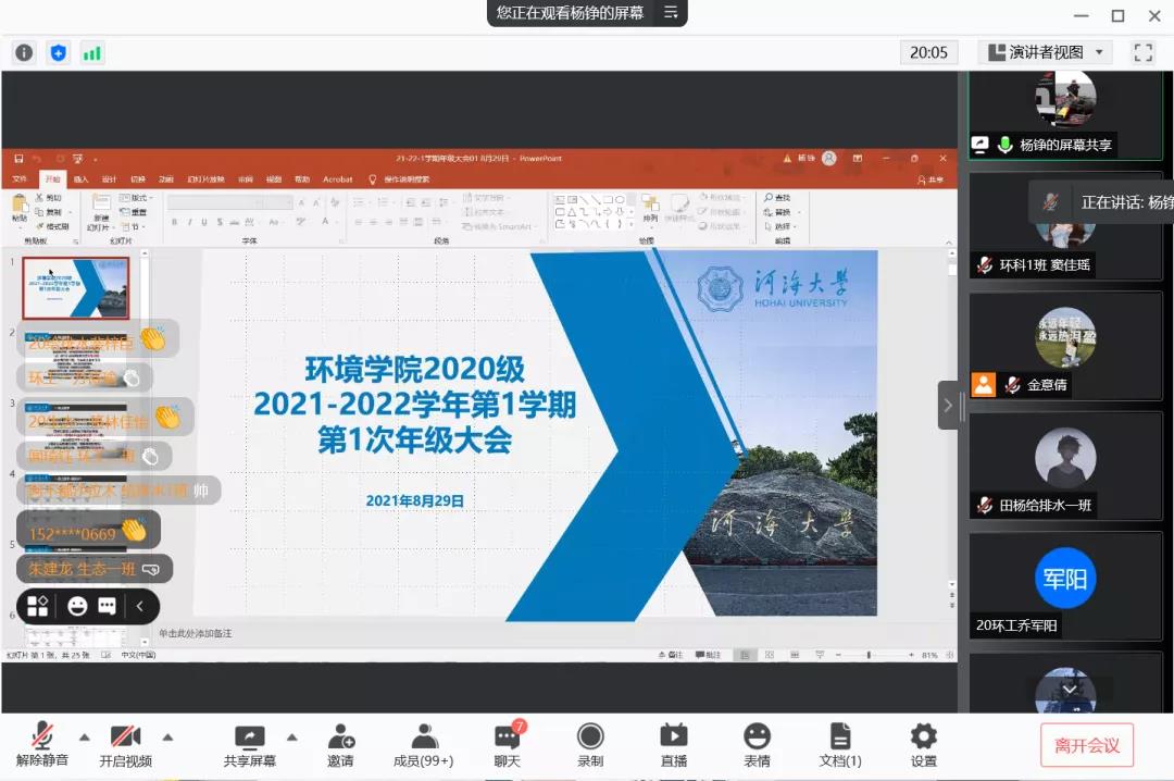 杨铮老师首先进行了年级大会的分享,分别围绕线上教学、课程选课、学费缴纳等方面向同学们进行了全面深入的介绍。从平均绩点、成绩分布等方面对上学期成绩进行了总结分析,规范了第二课堂学时要求,阐述了学业预警工作流程,明确学业要求,提醒同学们重视学习,努力提高绩点。