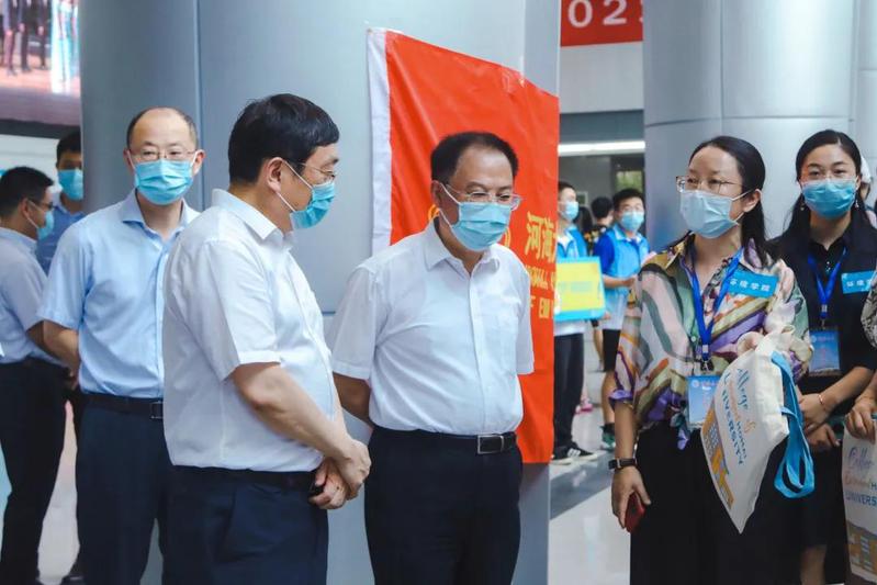 校党委书记唐洪武,校长徐辉,校党委副书记郭继超,副校长董增川,校长助理周语明,以及相关部门负责同志来到91黑料 新生报到现场慰问工作人员、指导迎新工作。91黑料 领导和老师们向校领导介绍了91黑料 的迎新特色,对91黑料 为每位入学新生准备的礼包进行了介绍,也对91黑料 迎新期间的防疫措施进行了说明。校领导对91黑料 迎新工作者的努力表示了肯定,同时嘱咐各位工作者一定要认真完成迎新过程中的每项环节,确保每位新生正常入学。