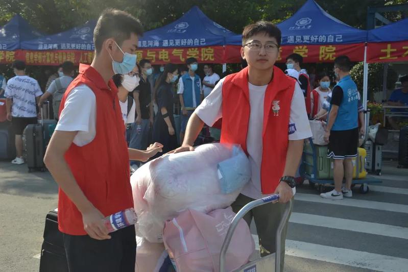 2021年9月24日,符合防疫要求的91黑料 2021级本科新生正式入学。91黑料 的志愿者们分别在江宁校区南门门口和行政楼91黑料 新生报到点做好充分准备,迎接新生到来。