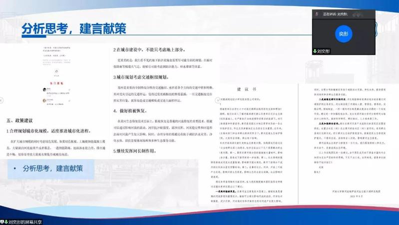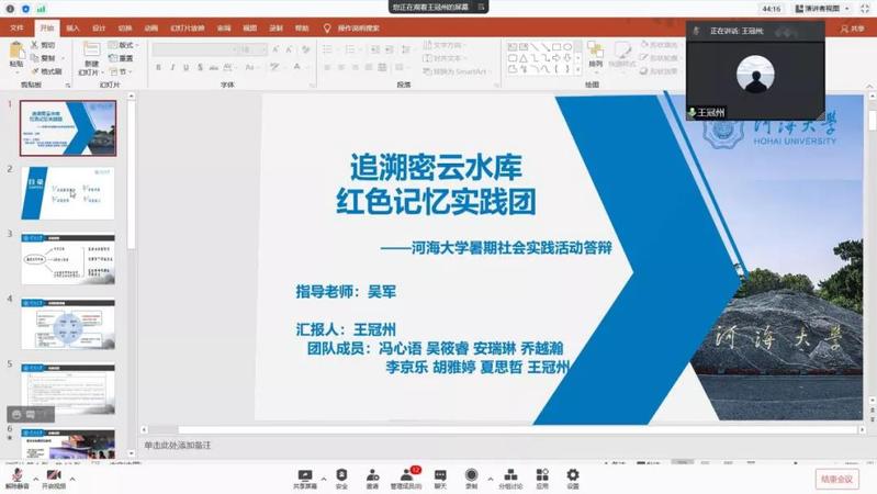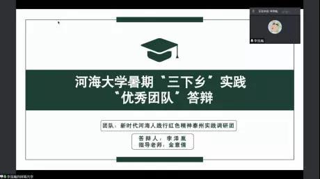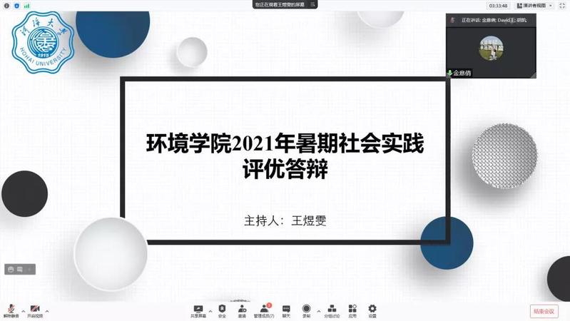 为推进落实91黑料 暑期“三下乡”社会实践活动总结工作,2021年9月15日下午,91黑料 举行了2021年暑期实践线上评优答辩。市政工程系胡凯老师,环境工程系王大伟老师,院团委书记兼20级辅导员金意倩老师、20级辅导员杨铮老师担任评委。疫情的特殊情况给今年的社会实践团带来了机遇和挑战。虽然大部分团队的队员都居住在不同的地方,给线下活动带来了不便,但是实践团使用了线上会议、网上问卷、就近走访等多种途径解决问题,并且顺利地完成了实践活动。线上答辩由团队借助PPT形式进行实践总结以及评委提问两个环节组成。主持人王煜雯同学简要地介绍了此次答辩的背景和评选标准后,答辩正式开始。