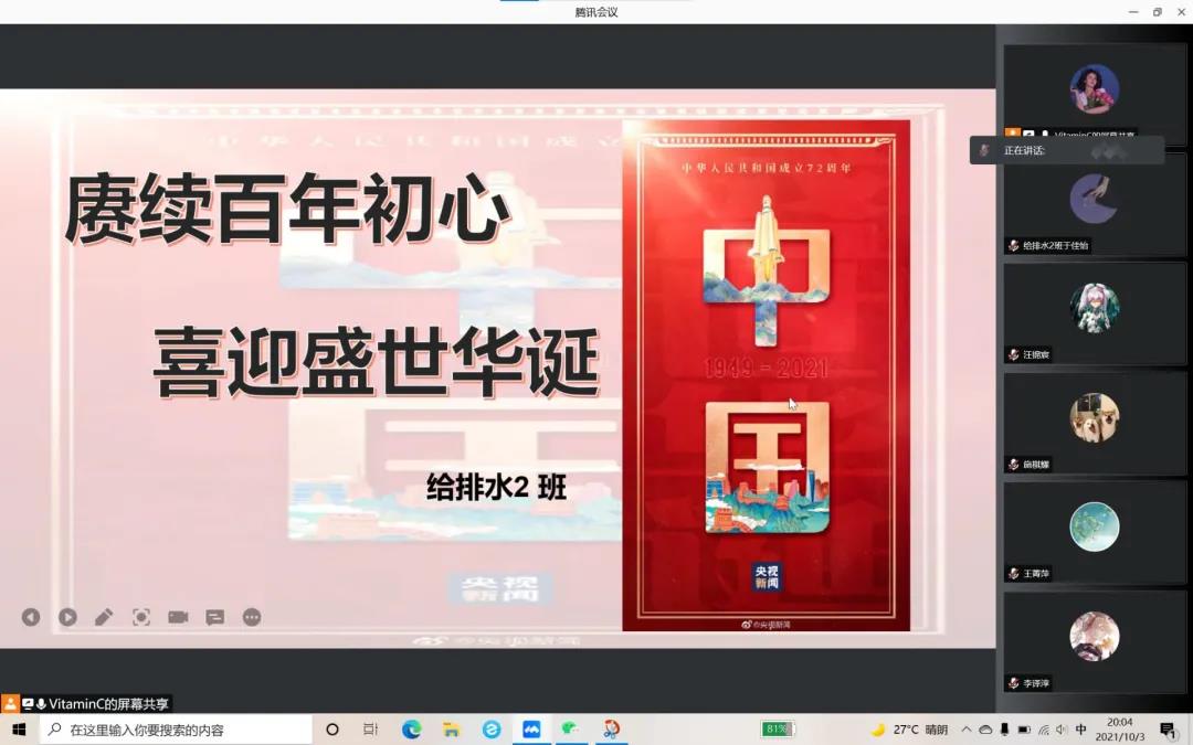 环科1班以线上主题班会的形式祝福伟大祖国生日快乐。