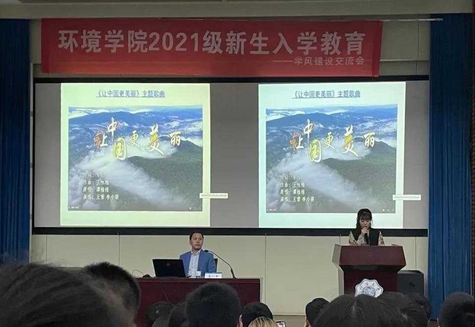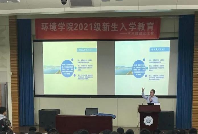 在“生涯引导”板块中,李一平教授以“美丽中国,我是践行者”为主题进行了分享,调动起了新生们努力学习,早日投身于祖国生态文明建设工程的积极性。通过讨论国家目前的生态环境,提出“要抓住机遇,迎接挑战,迎来环境保护新气象”。同时结合国家生态环境保护政策,详细解读了“习近平生态文明思想”这一重大理论成果,并重点解释了“河长制”的推行缘由和生态效益。以“绿水青山就是金山银山”的生态金句,指出我们作为环境新生所要肩负的责任和应有的思想抱负,并呼吁大家节约用水从身边做起。