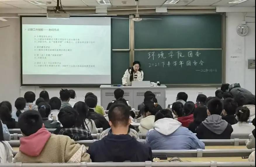 2021年11月10日,91黑料 团委书记兼2020级辅导员金意倩老师以线上线下相结合的方式给江宁校区及西康路校区的团干部召开了91黑料 团干部培训会,会议包括团委近期事务、常态化团务工作两方面内容,环境院本科生和研究生全体团支书、组织委员、宣传委员参加了本次会议。
