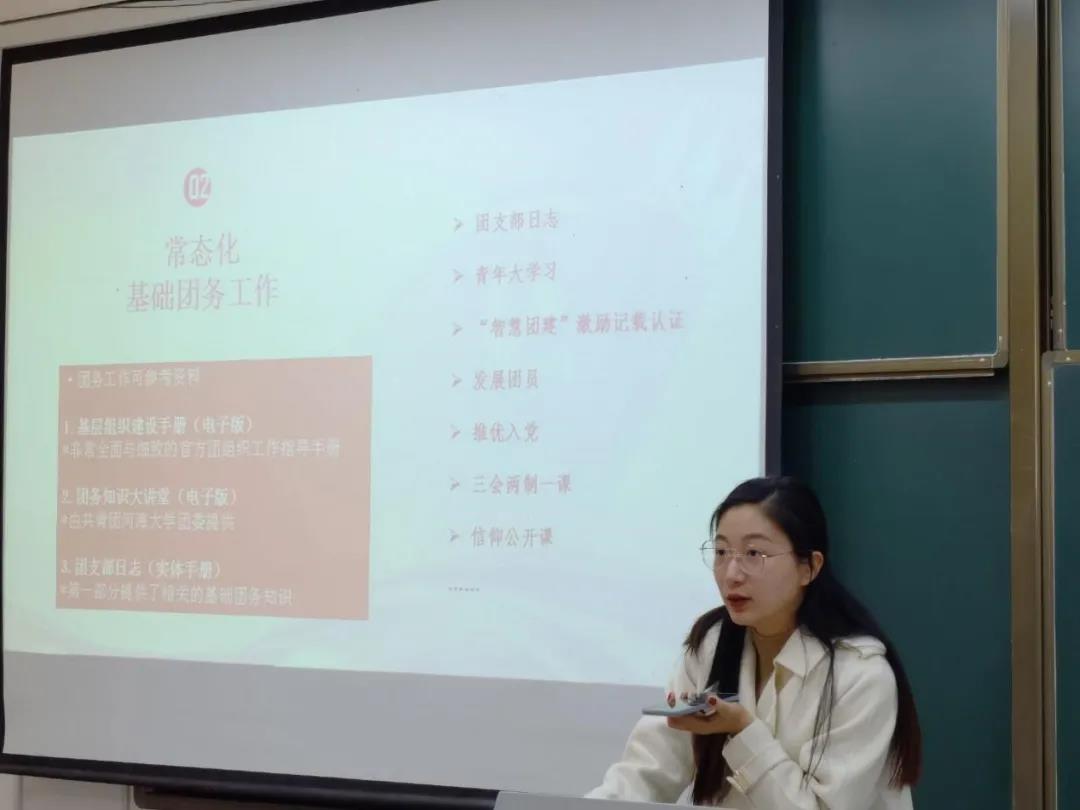 在第二项内容开始前,金老师给在场的团干部们明确了具体的团建组织工作列举了团务工作过程中可供参考的资料。