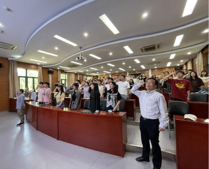 最后毕业生党员们重温入党誓词。“我志愿加入中国共产党,拥护党的纲领,遵守党的章程……为共产主义奋斗终身,随时准备为党和人民牺牲一切,永不叛党!”铿锵有力的宣誓声响彻整个会议室,唤醒和激发了各位党员内心深处的党性观念,也鞭策和激励了各位毕业生党员在未来的道路上坚定理想信念,恪守道德底线,时刻做到“自重、自省、自警、自励”。