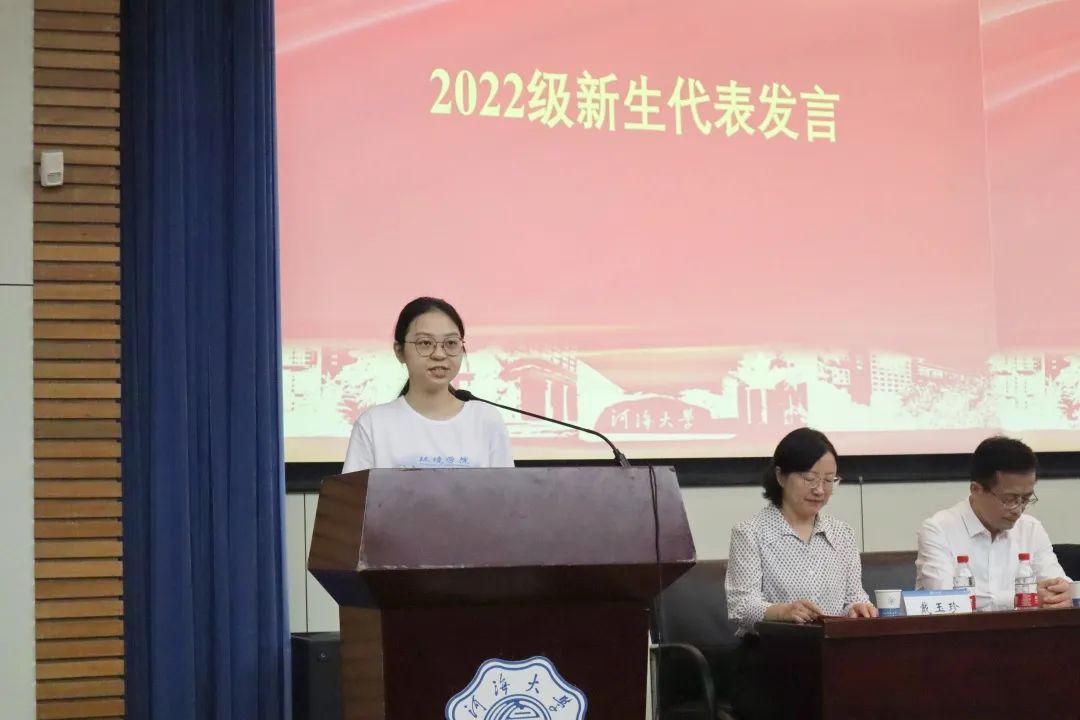 环境生态工程专业的新生代表王雨卉表达了自己初入大学的感受以及对大学生活的美好愿景,对当代大学生应有的素养进行了阐述:奋力拼搏、修养品德、敬爱师友、健康生活、展露才华。在努力中成就自我,在奋斗中实现价值,在青春的舞台上大放异彩