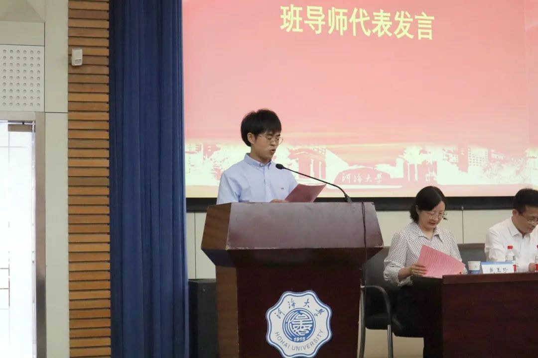 班导师代表尤国祥老师围绕大学四年的生活和学习,希望同学们能够尽快适应大学生活,在不懈怠学习的前提下,同时也能体验大学丰富多彩的生活;培养独立之精神,奋力拼搏,认真学习。同时,身为班导师,他也愿意及时为同学们提供帮助,全程为同学们做好服务和指导工作。