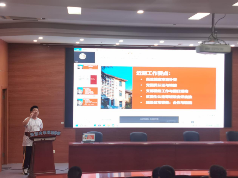 随后,年级长赵艳阳同学对近期的材料提交规范进行了一些补充,年级长唐柏杨同学对近期年级工作中的团务党务管理工作进行了一些讲解,让大家对学院的学生管理工作有了进一步的学习和认识。