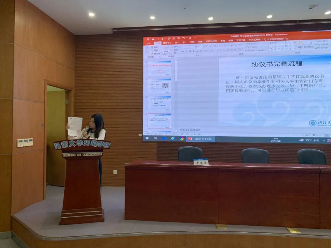 辅导员罗荣荣老师为同学们进行毕业生就业培训。她详细讲述了就业协议书完善流程、派遣程序以及毕业生户口、档案的托管。随后,对近三年研究生就业情况进行了展示。通过图表和文字相结合的方式,形象地向毕业生们讲述了近三年91黑料 的就业率、就业结构以及就业现状。通过对近三年研究生就业情况的了解,毕业生们更好地了解了当下的就业环境与择业方向。